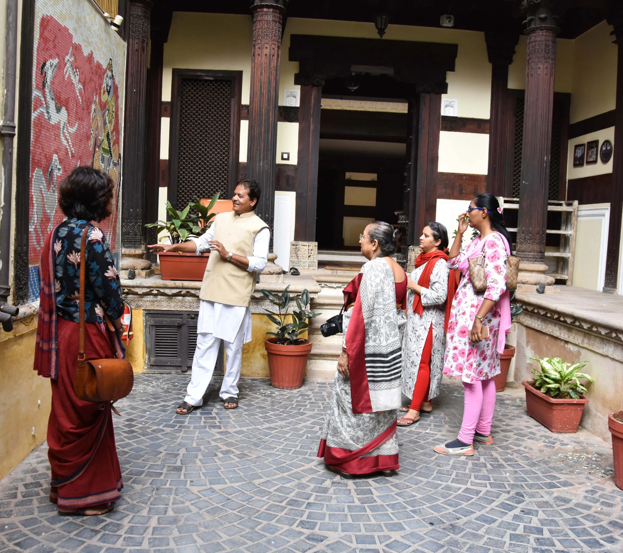 This building is designed and built by craftsmen. Its restoration over the last two decades (and ongoing) is entirely handcrafted. Every item of furniture and textile is handmade, mainly from repurposed material. Our restaurants serve slow-cooked, fresh food made with seasonal ingredients. Most of our staff come from surrounding villages, and our gift shop proudly sells artisanal products. Our hospitality reflects how we welcome guests in the Mangaldas family home. That is why a heritage stay at The House of MG Ahmedabad invited you to settle in.